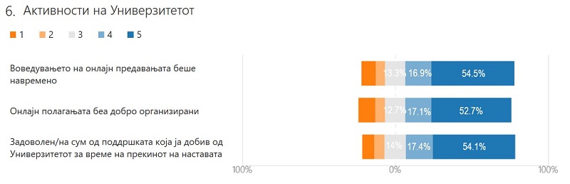 Најголем дел од студентите даваат позитивни оцени за начините на справување со ситуацијата, брзата реакција и поддршката што ја добиле од универзитетот.