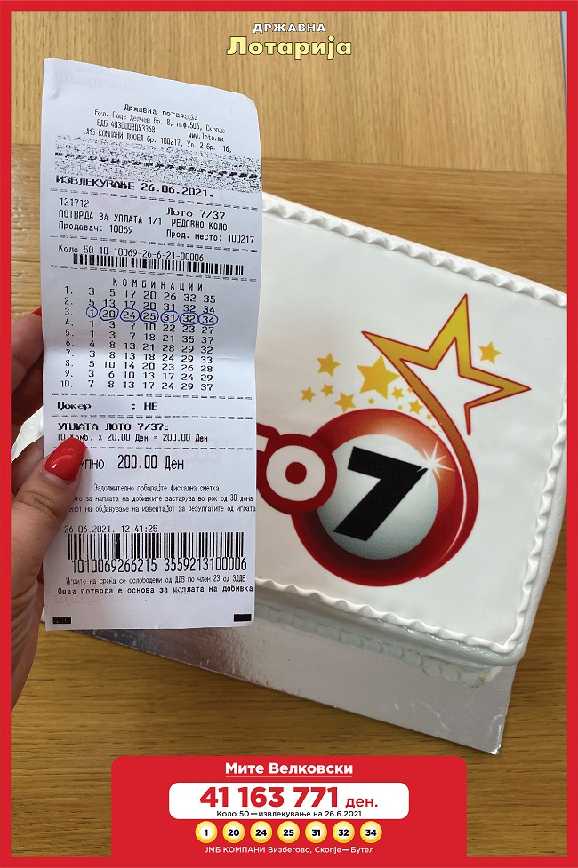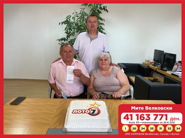 Ние, од Државна лотарија, имавме задоволство да го запознаеме семејството Велковски од скопско Визбегово, при неговата посета (со торта со лого Лото-7), на првиот работен ден по извлекувањето. По редовната проверка на уплатеното ливче и официјална потврда на добивката, видно возбудени, ни ја раскажаа среќната приказна и без двоумење се согласија за јавна објава.