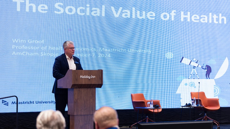 Главниот говорник на конференцијата - д-р Вим Грот, професор на Универзитетот Мастрихт од Холандија, зборуваше за „Трансформативната моќ на здравството“. Врз основа на резултатите од повеќе научни студии, обраќањето се фокусираше на економските импликации и општествената вредност на здравството. Според професорот Грот, вредноста што ја нуди здравствениот систем е посеопфатна од самото подобрување на здравјето и продолжувањето на животниот век, така што истовремено има клучно влијание во развојот на економските капацитети и продуктивноста на компаниите, но и општеството во целина.
