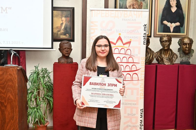 Марина Иванова е добитник на престижната награда „Вавилон“ за најдобар млад преведувач, која ја доделува Здружението на преведувачи и толкувачи на Македонија.