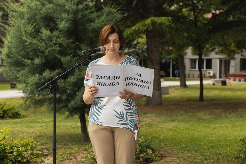 - Примарна цел на еден родител е да го подучува и насочува своето дете кон одговорно живеење и континуирано вложување во својата иднина. Упатувам голема благодарност до пензиските друштва поради тоа што се однесуваат родителски кон сите нас. Оваа кампања „Засади желба, за поубава иднина“ беспрекорно ја отсликува и нивната грижа за младите генерации. Сите знаеме дека едукацијата на младите е многу важен фактор за нивна поубава иднина, токму затоа како училиште топло ја прифативме поканата да учествуваме во оваа кампања. Ние со години наназад се грижиме за средината во која нашите ученици се едуцираат и многу вложуваме во уредување и раззеленување на училишниот двор. Верувам дека учениците ќе ја прифатат пораката на оваа кампања, ќе се однесуваат одговорно кон својата иднина и ќе се грижат за животната средина – изјави Слободанка Киселовска, помошник-директорка во училиштето „Здравко Цветковски“ во своето денешно обраќање.