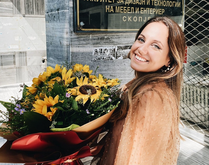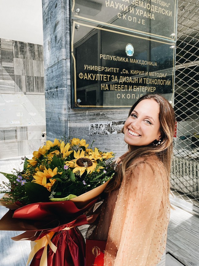 -Не е секогаш пријатно кога треба да одбегнеш забава или дружење со пријателите за да учиш цела вечер. Во такви моменти не размислуваме така и велиме дека многу пропуштаме, но има една реченица која секогаш ми одѕвонувала во главата: „Помачи се сега за да уживаш подоцна“, што и се потврди дека е така. Ништо не е изгубено ако пропуштите една, две, три забави, тие ќе се секогаш тука и дури станува позабавно кога имаш повеќе слободно време, а немаш испити. Не правев огромни жртви, но бев свесна дека времето треба да се планира одговорно, да се распредели, да се учи редовно и да се работи на препреките во текот на студирањето. Уживав во креативните предмети на проф. д-р Елена Никољски Паневски, кои се фокусираа на проектирање на просторот, запознавање со дизајнерски правци и историјата на целиот дизајн. Но, исто така, и проф. д-р Владимир Кољозов, кој нѐ запозна со спојот на технологијата, програмите и дизајнот. Кратката обука што ја посетував за CNC - програмирање во рамките на факултетот беше многу корисно надградување кое ме запозна како може кодот да придонесе и во нашата струка. И другите професори имаат своја заслуга бидејќи ни дадоа предизвици кои ни го разбудија интересот за оваа професија. Но можам да кажам дека најмногу се пронајдов во креативниот дел, предметите кои вклучуваат проектирање на ентериер и цртање мебел рачно и компјутерски - споделува таа.