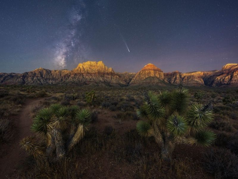 Фотографот Ден Зафра од „Кепчр д атлас“ прави неверојатни фотографии. Затоа, не е изненадување што успеа да документира редок астрономски настан, за кој отпатувал надвор од Лас Вегас за да ја фати кометата Атлас заедно со Млечниот Пат.