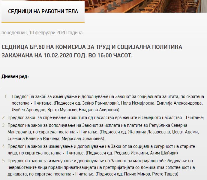 - Предлогот кој треба да важи од 1 јануари 2020 година е доставен на пленарна седница дури на 4 февруари, со 35 дена задоцнување. Воедно, Министерството за финансии на СДСМ нема обезбедени средства во буџетот за овие исплати - соопштија тие.