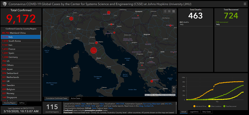 Бројот на Италијанци заразени со коронавирус вчера се искачи на над 9.100, а се зголеми и бројот на починати - на 463 - повеќето постари и луѓе со претходни здравствени проблеми. Од