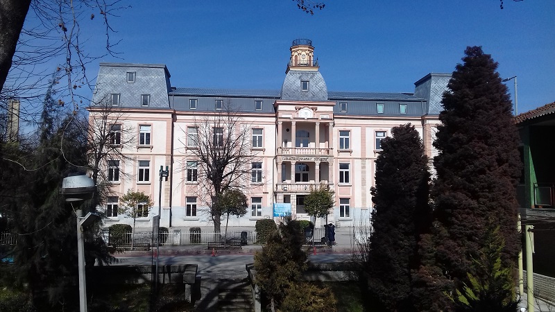 - Местото каде што требало да се подигне зградата било мочурливо, па затоа Сабри-беј морал да копа канали за одводнување и водата да ја спроведува до Билјанини Извори. За да ја зацврсти подлогата, донел огромни камења, а лично ги надгледувал градежните работи. Во близина подигнал шатор и не се оддалечувал од местото. Главен мајстор бил дунѓеринот по име Реџеп, а помошник бил мајсторот Спасе Костојчиноски од Вевчани. На објектот работеле вкупно 40 мајстори. Камен и тули се пренесувале од месноста Бејбунар. На зградата се работело три години, а непредвидените проблеми направиле таа да чини многу поскапо отколку што планирал Сабри-беј.