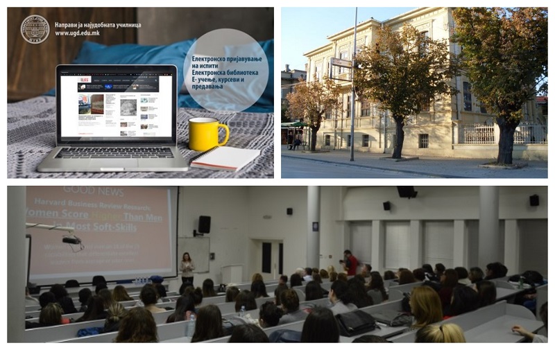 - На некој начин бевме подготвени за ситуацијата затоа што веќе користевме многу онлајн-алатки: Е-учење (moodle) платформа каде што се сместени сите потребни материјали за предметите. Преку оваа платформа се организираат и дел од колоквиумите и ќе бидат организирани испитите за поголемите групи. Е-библиотека – платформа каде што се сите учебници, скрипти, практикуми и каде што студентите можат да ги преземат бесплатно. Со ова им овозможуваме на студентите да ги имаат сите учебни помагала од дома, на безбедно. Е-индекс – каде што студентите можат да ги извршуваат сите обврски онлајн: пријавување, заверување, поднесување барања, следење резултати ...MS Teams – моментално ја користиме за предавања и е платформа каде што ќе се спроведуваат усни испити. Оваа платформа се користи исто и за одбраните на дипломските трудови - велат од УГД.