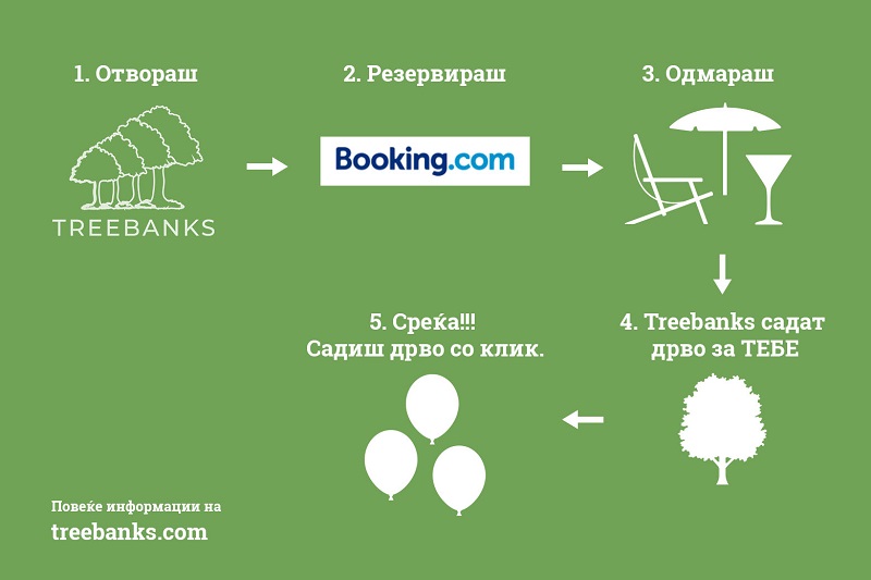 - Средствата за садење дрвја ги собираме со помош на филијален маркетинг. Имаме партнерство со Вооking.com, Kiwi.com и Agoda.com. За секоја резервација на овие платформи што е почната од нашата веб-страница, Treebanks добива процент кој го инвестира во садење дрвја. Креативноста во овој модел за добивање средства е што е бесплатен за нашите поддржувачи. Без пари секој што патува може да придонесе за засадување дрвја во Македонија - додава Михаил.