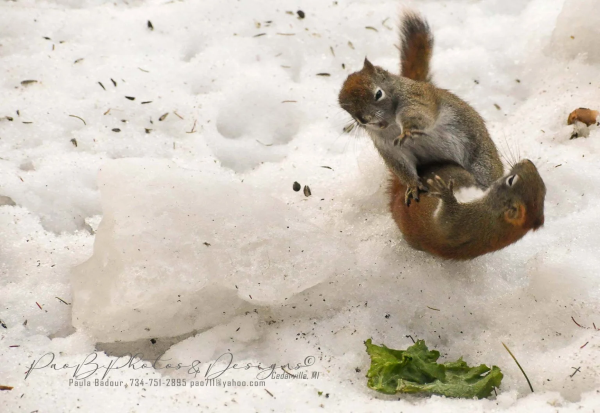 Фотограф од Мичиген направил смешни фотографии од две верверички кои се караат која да го изеде парчето зелена салата.