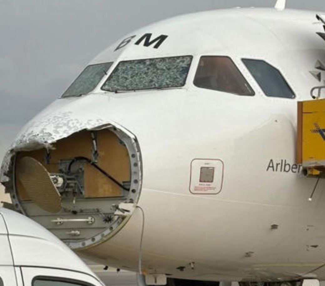Авион на „Остријан ерлајнс“ вчера влетал во невреме со град, при што претрпел големо оштетување и изгубил дел од носот.