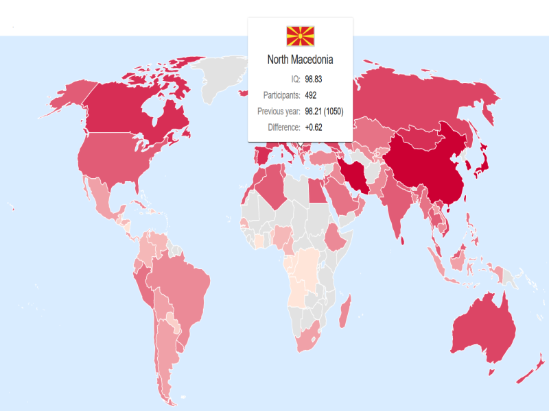 Веродостојност на резултатите: Сите учесници го завршија истиот тест за интелигенција на оваа веб-страница во 2023 година, а во 80 отсто од земјите резултатите за коефициентот на интелигенција се слични (разлика <2 поени) со оние од претходната година.