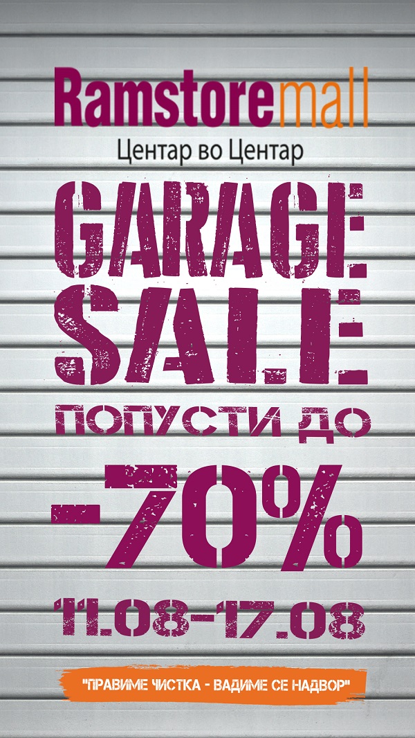 Од 11 до 17 август во „Рамстор Мол“ започнува веќе добро познатата шопинг манија Garage Sale под мотото Правиме чистка, вадиме сè надвор!