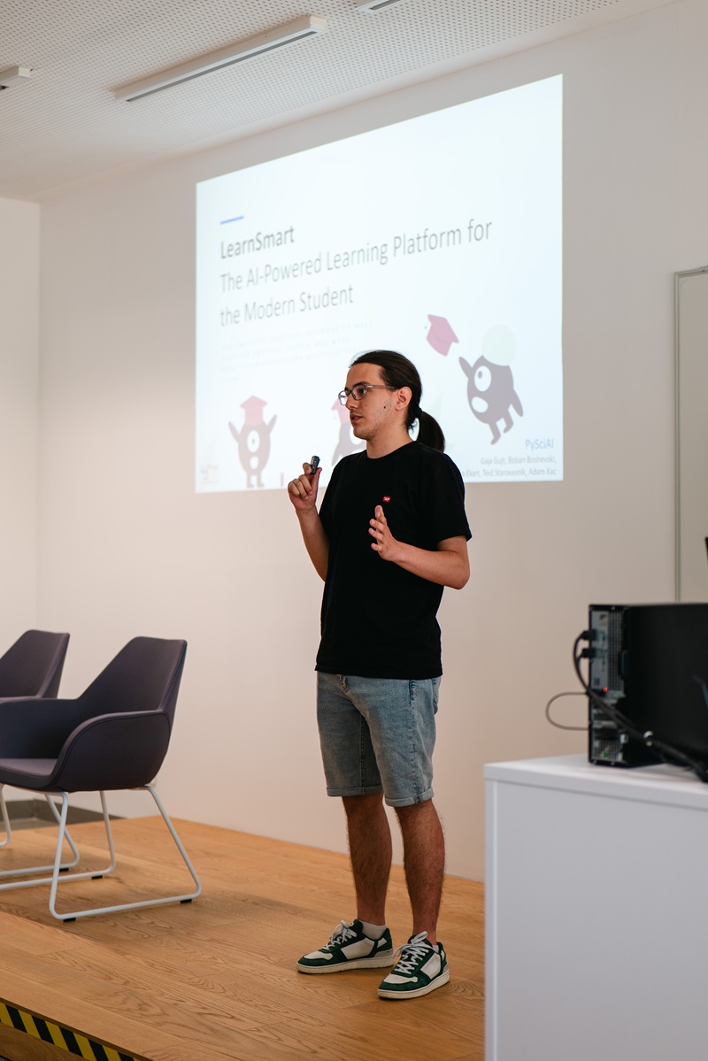 - Лично сметам дека нашиот концепт претставува нешто што сѐ почесто ќе го гледаме во иднина. Почнавме од реалните предизвици – нашите лични искуства и проблемите со кои се соочуваат учениците денес. Решението што го предложивме овозможува побрз пристап до информации, поквалитетни материјали за учење и поефикасно искористување на времето за учење. Дополнително, концептот овозможува персонализиран пристап – секој ученик да учи на начин приспособен на неговите потреби и можности. Она што ја прави идејата навистина силна е тоа што не е само визија за иднината, туку е изводлива и применлива во поширок контекст. Таа комбинација на иновативност и практичност ја направи препознаена и победоносна, што беше потврдено и на натпреварот во Загреб - информира Бобан.