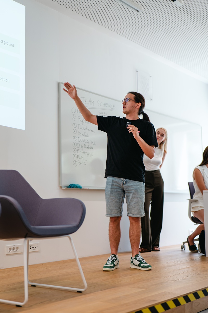 - Притисокот беше многу поголем, но тоа ни овозможи да работиме интензивно и фокусирано. Темата што ни беше доделена беше „Sustainable Intergenerational Cooperation Design (Human-Human Symbiosis)“. Од идеја до реализација поминавме низ повеќе фази, каде што секој нов чекор претставуваше усовршување и подобрување на првичната замисла. Нашиот тим беше интердисциплинарен и се состоеше од членови од два различни факултети, што ни даде поширока перспектива и разновидни пристапи. Јас ја имав улогата на лидер на тимот, но работата беше колективна и динамична. Моите главни одговорности беа насочени кон документација на идејата, истражување и проверка на нејзината изводливост, координирање на фазите на работа, подготовка и уредување на видеопрезентацијата, како и активно учество во презентирањата. Во секоја фаза се трудев да придонесам и со подобрување на концептот, заедно со остатокот од тимот. Тоа заедничко залагање беше клучно за нашата успешна реализација - посочува Бобан.