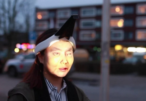 На интернет деновиве се појави видео на кое човек на главата носи венче со видеопроектор. Првично се мислеше дека „изумот“ бил користен во протестите во Хонгконг.