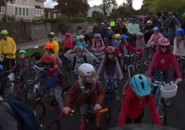 Во видеото во продолжение погледнете како изгледа кога над 100 ученици учествуваат во велосипедски автобус.