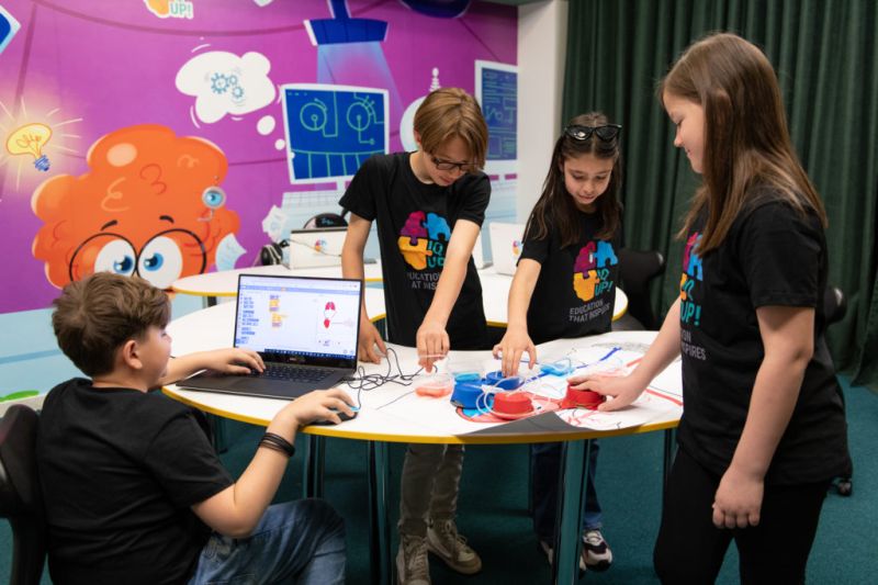 Затоа, нашиот метод се фокусира на поврзување на најважните дисциплини познати како STEAM-едукација, збогатени со литература и кодирање. Темите што се изучуваат во IQ UP истовремено поврзуваат билогија, хемија, физика, математика, литература, уметност и програмирање. На тој начин им помагаме на нашите ученици да развијат неколку многу важни вештини, како што се алгоритмичко и критичко размислување – или самостојно размислување кое создава нови и иновативни решенија. Така ја поттикнуваме самостојноста во размислувањето, но и ги учиме децата од повеќе агли да му пристапуваат на секој проблем, аплицирајќи и комбинирајќи ги сите знаења што ги поседуваат.