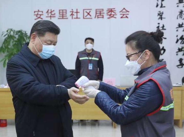 Носејќи хируршка маска при посетата на медицинскиот персонал во болницата „Дитан“ во Пекинг, Си ја провери својата температура и им мавна на лицата сместени во апартманите, покажуваат снимките на ЦЦТВ.