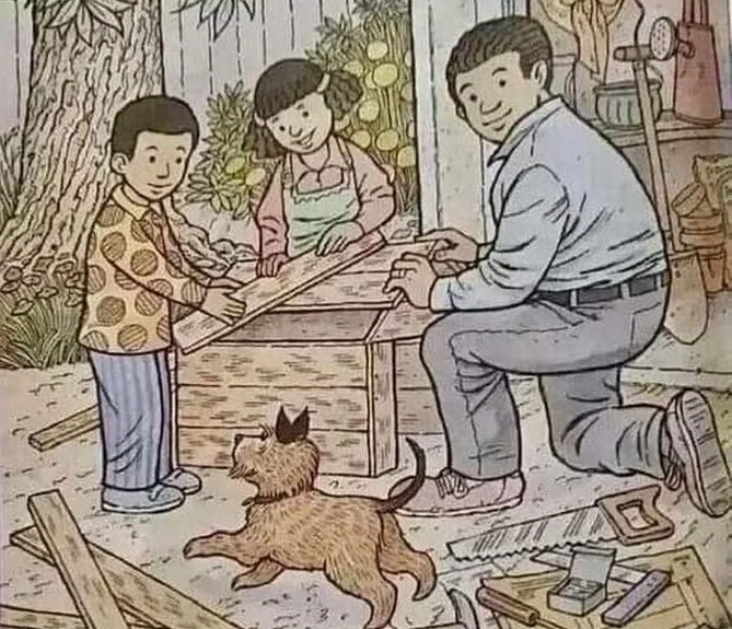 А решението е следно, патката се наоѓа меѓу задните нозе на кучето, пеперутката се наоѓа во средишниот дел од крошната на дрвото, а лилјакот меѓу девојчето и момчето.