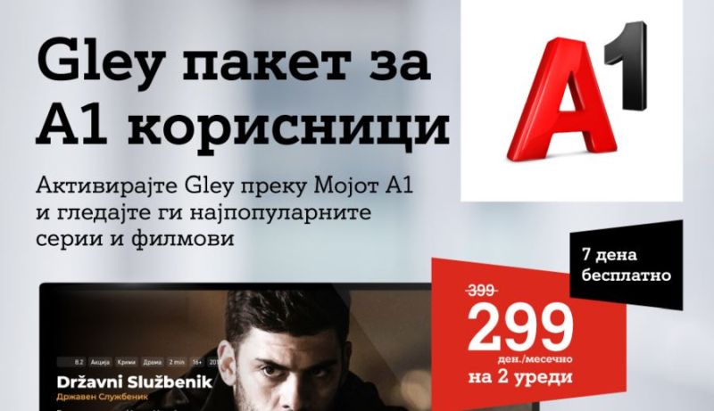 Со оваа соработка, сите постпејд А1 корисници на мобилните и фиксни услуги добиваат ексклузивна можност да пристапат до атрактивните содржини на Gley со активирање на Glеy Standard пакетот за месечна претплата од само 299 денари и тоа да ги следат Gley содржините на 2 уреди истовремено или да го активираат Gley Family пакетот и за 399 денари месечна претплата да гледаат на 4 уреди истовремено. Дополнително, сите што ќе активираат еден од двата пакети добиваат период од 7 дена бесплатно следење на Gley содржините.
