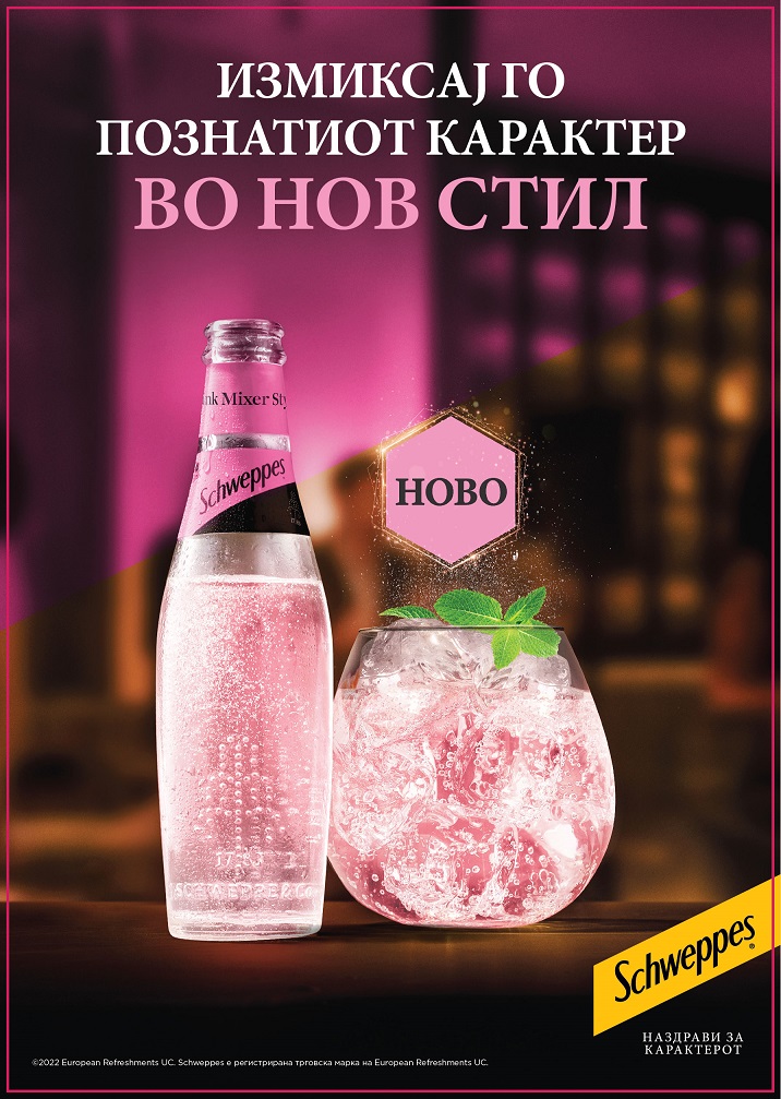 Новиот пијалак од линијата миксери на Schweppes - Schweppes Pink Mixer Style и официјално е лансиран на пазарот. Нуди една нова димензија во светот на миксологијата. Овој миксер се одликува со карактеристична бледо розова боја, суптилен вкус на шумско овошје и кинин и секако, препознатливите освежителни меурчиња на Schweppes.
