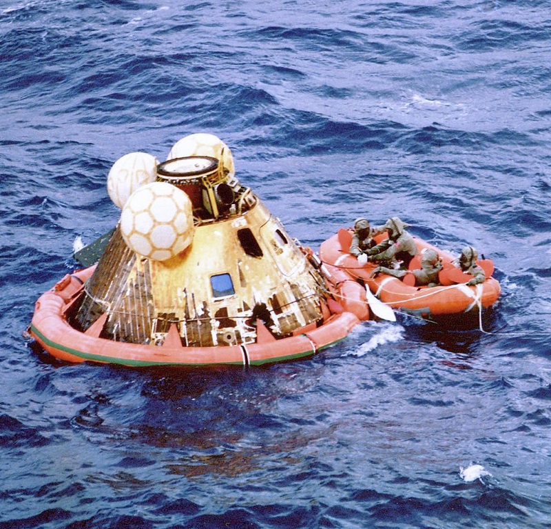Повратното патување до Земјата почнало на 24 јули и екипажот се спуштил во Тихиот Океан.