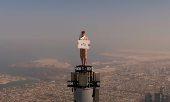 Како што се вели во видеото, ова направило компанијата да се чувствува како да е на врвот на светот. Затоа, инфлуенсерката Никол Смит-Лудвик, која е член на екипажот на „Емирејтс“ се качила на врвот на Бурџ Халифа.