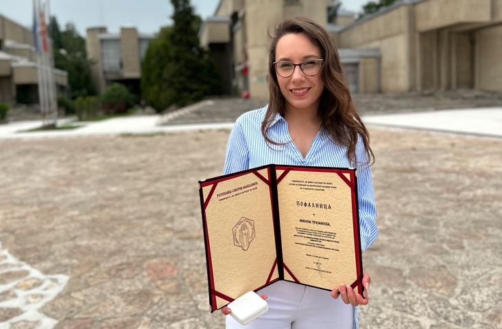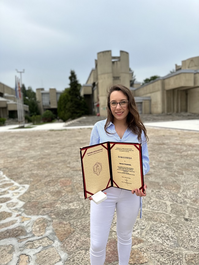 - Јас како голем ентузијаст и амбициозен студент се посветив и на практична работа, како и истражување. За време на студиите работев полно работно време како инженер за машинско учење (област од вештачка интелигенција) што беше дополнителен предизвик да се изменаџира сето тоа. Меѓутоа, успеав да поставам добар систем за организација на времето и да напредувам и лично и професионално истовремено. Главните фактори што ме водеа кон постигнување врвни резултати, пред сѐ, беа мојата огромна љубов кон областа што ја избрав, желбата да учам нови работи и мојата љубопитност да истражувам. Компјутерските науки и инженерството напредуваат со голема брзина, па за да бидете во тек со најновите трендови, мора постојано да учите. Приказната немаше да биде целосна да не бев опкружена со амбициозни луѓе на факултетот, ментори кои се експерти во својата област и кои вложија голем труд да ми помогнат на мојот академски пат - дополнува нашата соговорничка.