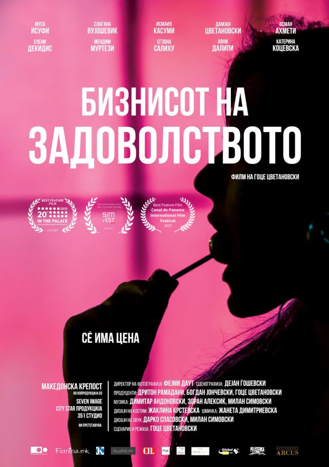 „Бизнисот на задоволството“ во август беше премиерно прикажан пред македонската публика и одлично прифатен на затворањето на 22. издание на фестивалот на европски филм „Синедејс“. Минатиот месец ја доби и наградата за најдобар долгометражен филм на фестивалот „In The Palace“ во Софија, а со највисокото признание се закити и во Панама на филмскиот фестивал Canal de Panama International Film Festival.