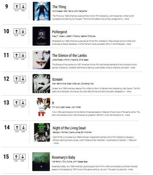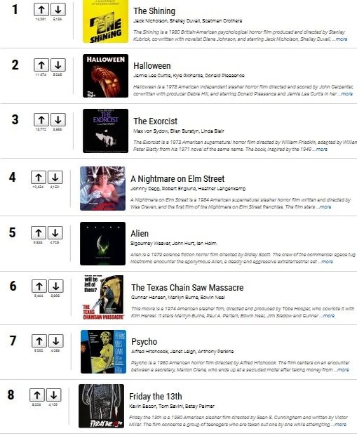 „Сјаење“ („The Shining“) е најдобриот хорор-филм на сите времиња според анкетата на филмољупците на веб-страницата „Ранкер“, каде што повеќе од 35.000 луѓе оставиле над милион гласови, а можете да гласате и вие.