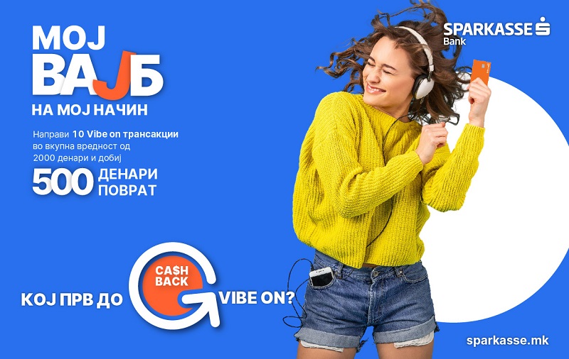 „VIBE ON – CASHBACK“ кампањата која нуди одлична можност за поврат на средства на „Vibe on“ трансакциската сметка и многубројни поволности за сите корисници на „Vibe on“ пакетот за млади.