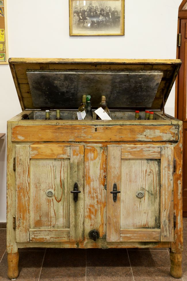 - Внатрешниот дел има 3 прегради, а во средната преграда се ставал мраз. Мразот се носел од едно место во близина на Кавадарци наречено Мечкина Дупка, каде што благодарение на географската положба и длабочината на дупката од 50 метри, го имало преку целата година. Овој фрижидер е единствен во нашата држава и ни дава сведоштво како во тој период се ладеле виното и ракијата за да можеле да се служат пред консументите - раскажува Честоева.