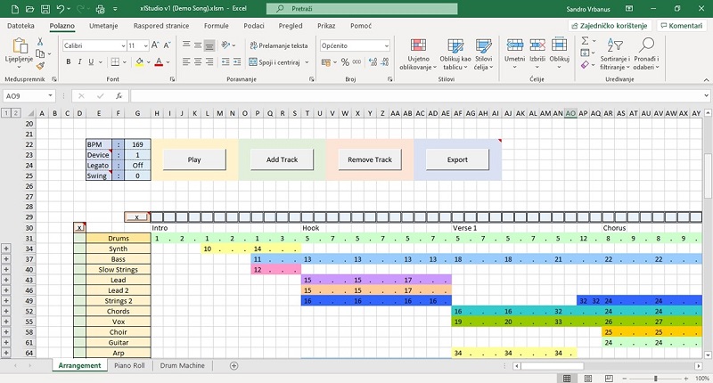 Меѓутоа, Талчиф не запрел само на ритам-секцијата, па во својот проект вметнал и можност за создавање мелодија со помош на виртуелно свирење на клавијатура, што „Ексел“ и неговите ќелии ги претворило во речиси целосна дигитална аудио работна станица (DAW).