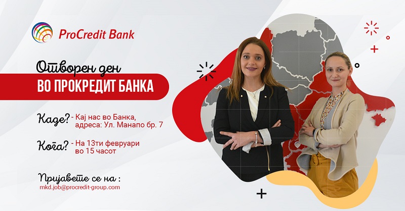 ПроКредит банка организира отворен ден за сите заинтересирани лица со или без претходно работно искуство