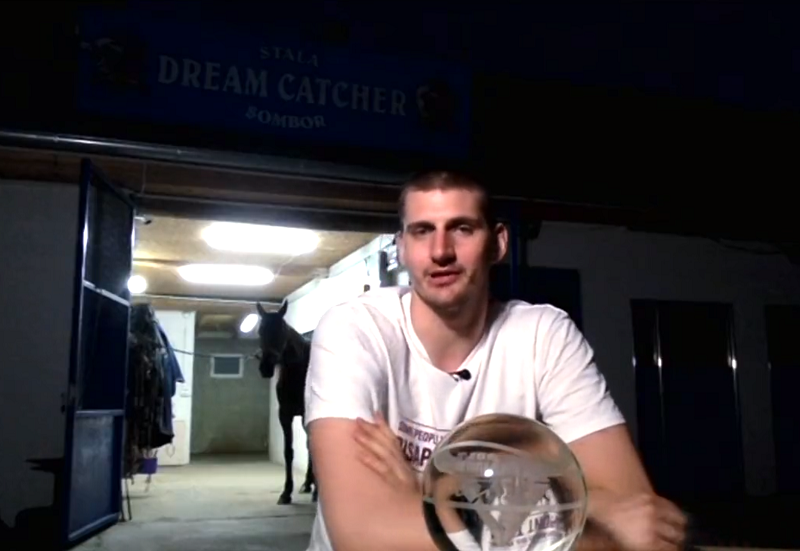 Српскиот кошаркар Никола Јокиќ ја прими наградата за најкорисен играч (МВП) во НБА-лигата во родниот Сомбор, каде што најблиските го изненадија во штала за коњи.