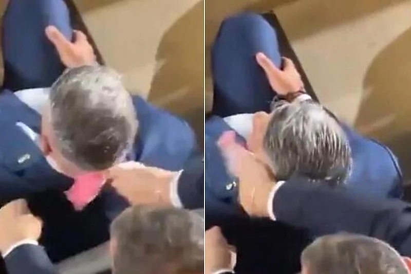 Имено, Тапија од трибините го следеше полуфиналето против Канада, а јавноста остана згрозена кога виде дека тој си вработил човек чија единствена работа е да му ја брише потта од главата.