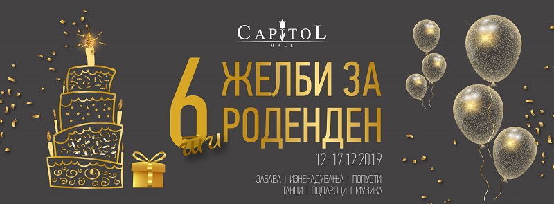 „Капитол мол“ во овие 6 години прерасна во срцето кое најсилно бие во Општина Аеродром. Стотици илјади посетители и безброј семејни мигови го исполнија молот со среќа низ годините. За да се прослави ова прекрасно постоење, „Капитол мол“ организира 6-дневен роденден исполнет со забава, изненадувања, попусти, танци, подароци и музика. Тој ги исполнува вашите 6 желби за својот 6. роденден.