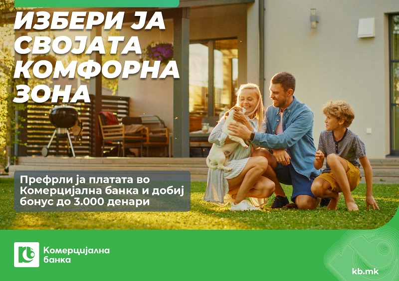 Префрлањето плата во Комерцијална банка не значи само сигурен потег и топло добредојде, туку и избор на банка која те поддржува во твоите желби и потреби.