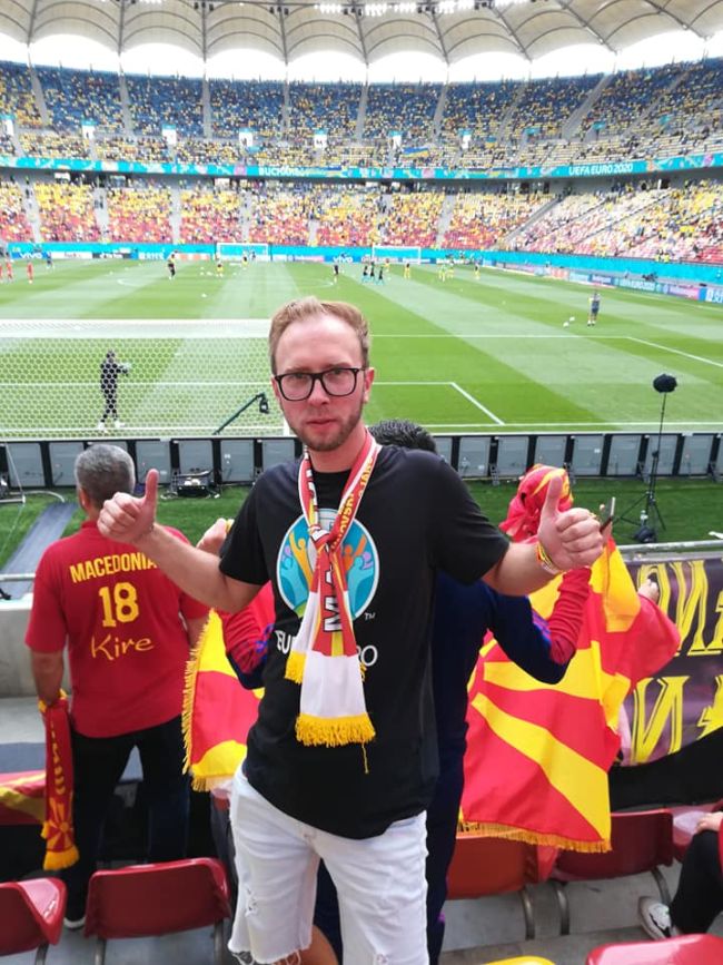 - Ги купив билетите за Европското првенство во фудбал на почетокот на 2019 година за Букурешт. Не беше сигурно кои екипи ќе играат таму. Една година подоцна, откако видов дека таму ќе играат Украина, Македонија и Австрија, бев сигурен дека оваа група не е интересна. На крајот, она што го видов беше сосема спротивно од моите претпоставки. Всушност, бев сведок на една од најголемите поддршки од и со Македонците. Македонските навивачи ме воодушевија. Тоа не се опишува. Навистина посебно чувство. Така се приврзав за Македонија. Така почна сѐ.