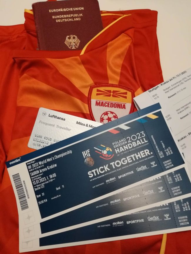 Во 2022 година тој, исто така, им ја даде својата поддршка на ракометарите и во Дебрецин. Се збогати со уште едно бесценето искуство. Рамо до рамо навиваше со македонските навивачи, до утрински часови се тешеа или славеа. И сега е веќе во Краков, обоен во боите на Македонија. Вооружен со македонски навивачки реквизити.