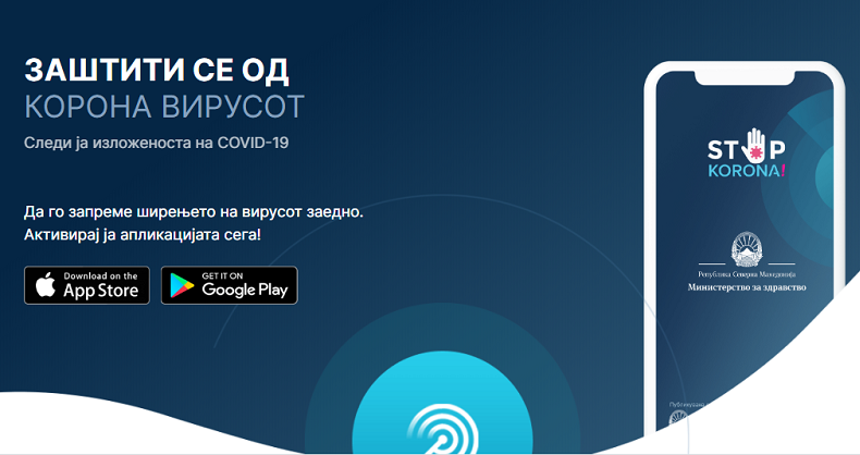Сите жители на Македонија што поседуваат паметен телефон сега можат да ја преземат апликацијата StopKorona! која е наменета за откривање близок контакт со потенцијално заразени лица преку постапка за детекција на блискост на мобилни уреди/апликации преку блутут-технологија. Целта е мобилната апликација да даде брз одговор на здравствените органи со кои лица бил заразениот во близина во изминатите 14 дена.