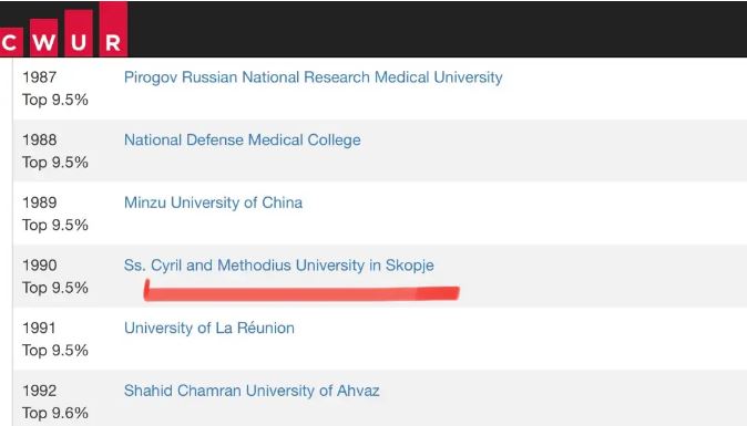Центарот за рангирање на светски универзитети (CWUR) ја објави листата на 2.000 најдобри универзитети во светот за 2024 година, на која државниот Универзитет „Св. Кирил и Методиј“ – Скопје е рангиран на 1.990. место.