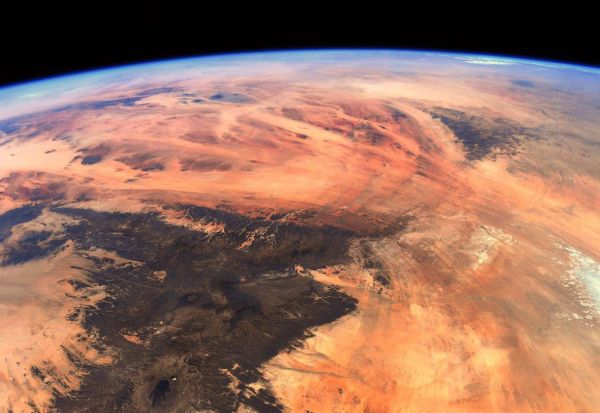 Но, постојат делови од Земјата кои од вселената потсетуваат на површината на Марс. Токму ова го открил астронаутот на Европската вселенска агенција, Томас Пескет, додека ја фотографирал Земјата, која на почетокот од овој месец имала доста црвена боја.