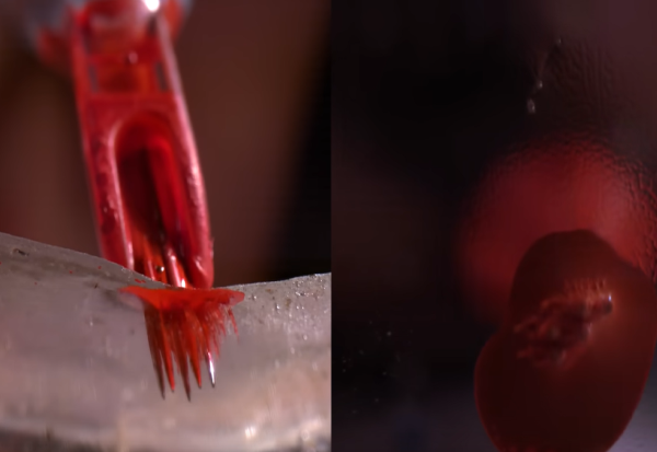 Потоа, Гав и Дан зеле балистички гел и почнале да тетовираат во него. Бидејќи супстанцијата е проѕирна, дава одлична визуелна слика за тоа како би можело да изгледа кога се тетовира кожата.