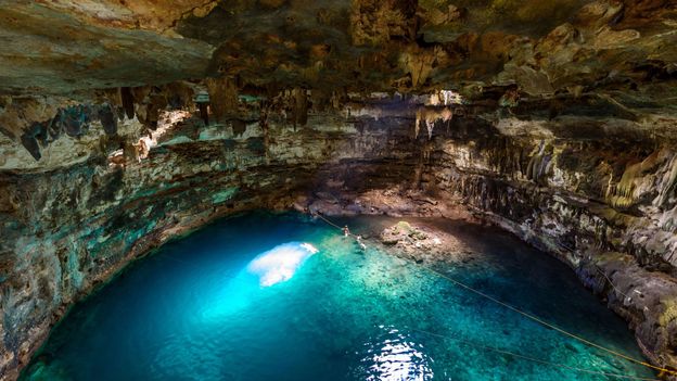 Сенотите, дупки исполнети со подземна вода опколена од карпи, се обележје на овој пејзаж. Гледано од вселената, тие се спојуваат и формираат лак. Археолозите ја откриле шарата, односно кругот кој ги опколува главниот град на мексиканската сојузна држава Јукатан, Мерида, и пристанишните градови Сисал и Прогресо, додека се обидувале да сфатат што се случило со мајанската цивилизација, која некогаш владеела на полуостровот. Мајанската цивилизација зависела од сенотите за питка вода, но необичниот распоред на дупките ги збунил истражувачите додека ги презентирале пронајдоците на колегите специјалисти на научна конференција во Акапулко, Мексико, во 1988 година.