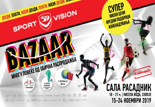 Во ноември нѐ очекува најголемата спортска распродажба видена досега во Македонија - Sport Vision Bazaar. Распродажбата е организирана од страна на компанијата Sport Vision под мотото #СпортизирајСе со невидено ниски цени на Sport Vision Bazaar од 15 до 24 ноември 2019 во спортската сала „Расадник“ во скопската населба Кисела Вода. Најавена е супер богата понуда со голем избор на спортска облека, опрема и обувки за сечиј вкус и лавина од спортски попусти.