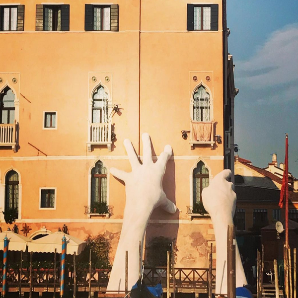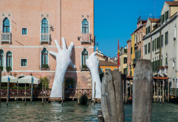 Поради својата специфична положба, градот на мостовите и гондолите, под влијание на климатските промени, е загрозен од покачувањето на нивото на морето. Инспириран од ова, Квин извајал раце високи 9 метри кои биле потопени во Големиот канал и позиционирани да го поддржат познатиот хотел.