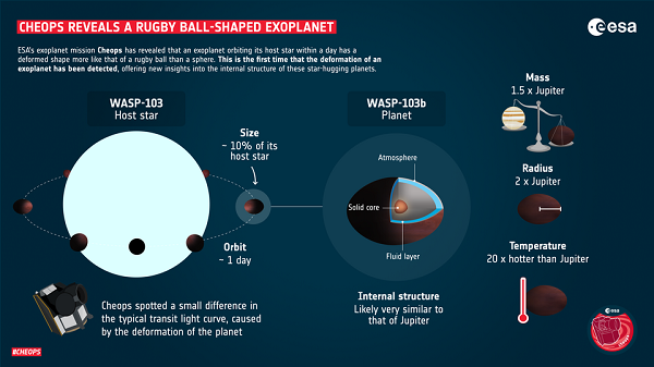 Научниците претпоставуваат дека планетата е деформирана поради силни брановидни сили предизвикани од нејзината ѕвезда, која се наоѓа блиску до неа. Сепак, ова е првпат научниците да забележат ваков деформитет кај егзопланета.