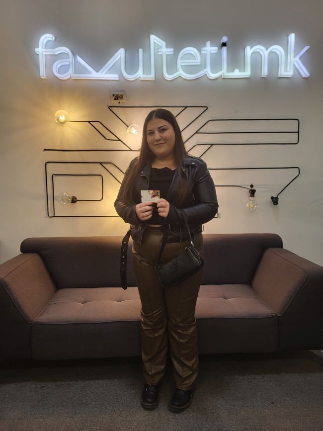 Ана студира на ФИНКИ и е втора година. Денеска таа дојде да си го подигне ваучерот од 5.000 денари и ни раскажа дека во украсувањето на собата ѝ помогнале и нејзините три цимерки.