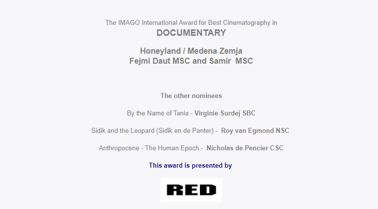 Ова е врвна награда во светот на кинематографијата и една од низата награди за Љума и Даут и воопшто, за „Медена земја“. ИМАГО е интернационална федерација на кинематографери со речиси 4000 члена од цел свет.